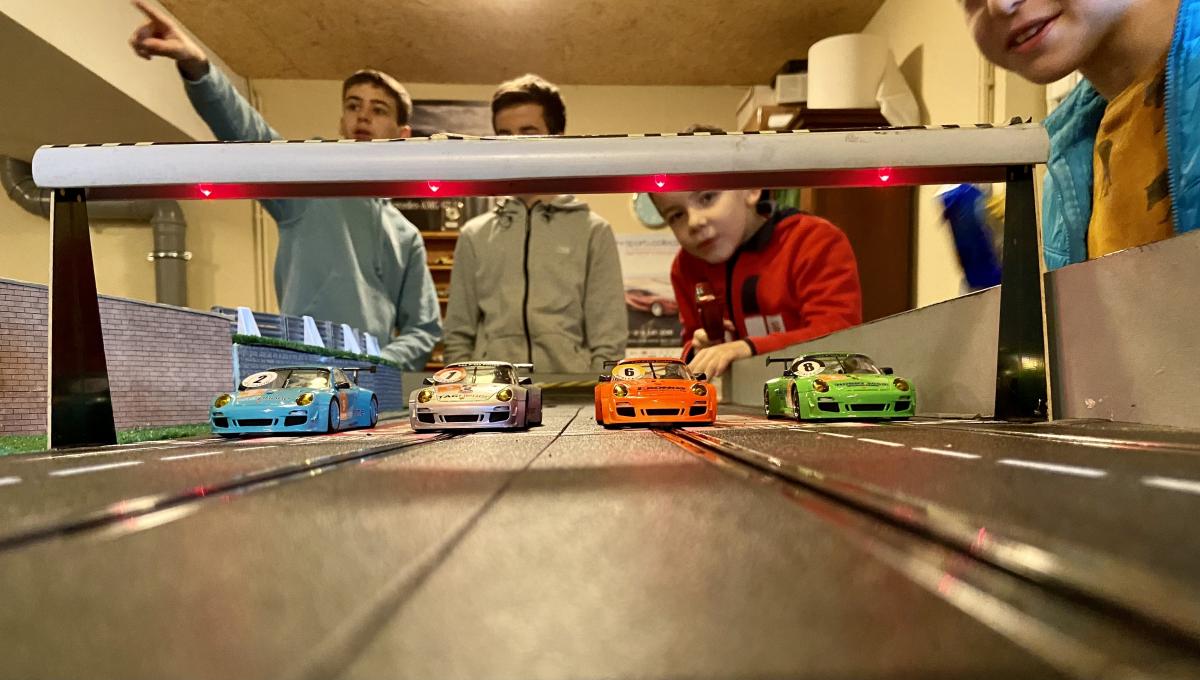 Le fait que nous les avions confinés aux voies 5 et 6 (les plus difficiles de ce circuit qu'ils connaissent par cœur) ne les a pas empêchés de terminer chaque course avec au moins un tour d'avance sur Thomas, qui termina systématiquement troisième. Les trois dernières places furent l'occasion de belles batailles entre Côme, Enzo, Natan et moi, dont une qui se termina avec les trois voitures dans le même tour et à quelques mètres de distance seulement