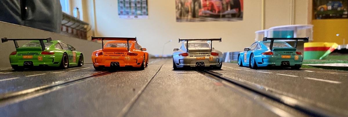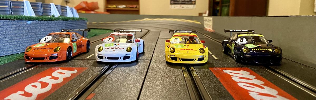Comme « show must go on », voici quelques nouvelles des courses, et tout d'abord les « GT Am », c'est-à-dire nos quatre plus jeunes sloteurs (9-12 ans), trois d'entre eux étant purement et simplement des rookies