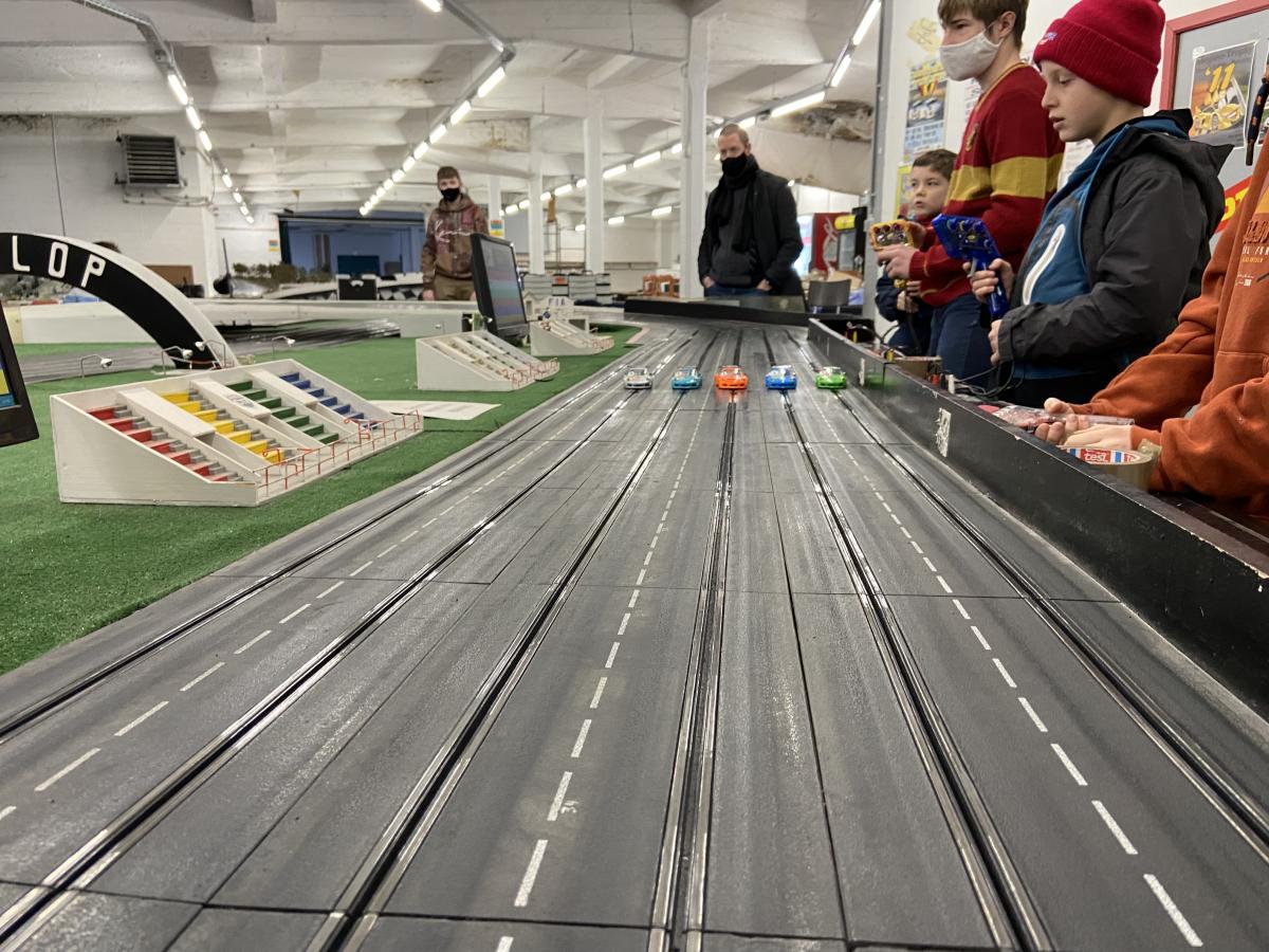 Nous étions pour l'occasion accueillis par le club « Slot 4000 », qui a gentiment mis sa piste Carrera de 6 voies et 47(!) mètres de long à notre disposition, à l'étage au-dessus du magasin Hobby 2000 bien connu des sloteurs belges.