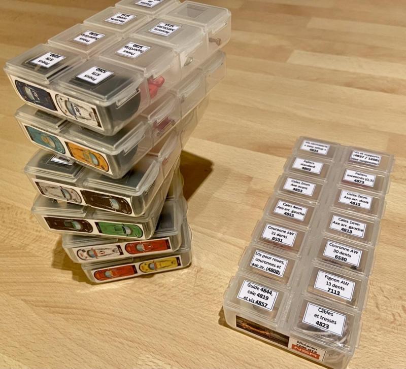 Je n'en reviens pas de la méthodologie, de l'organisation et des attentions réservées aux pièces de rechange : les petites boites plastique décorées ....