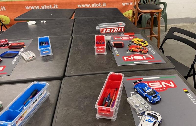 Si Thomas et moi nous sommes chargés des voitures, de leur préparation et de l'encadrement logistique (pièces de rechange, boîtes à outils etc.), christophes nous a quant à lui donné un gros coup de main pour avoir accès au local du club et pour compléter le groupe de jeunes sloteurs … et sloteuses