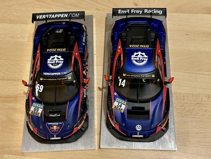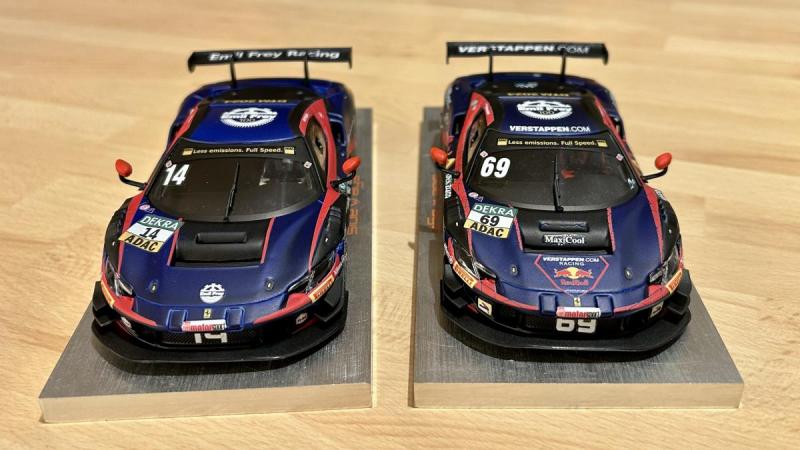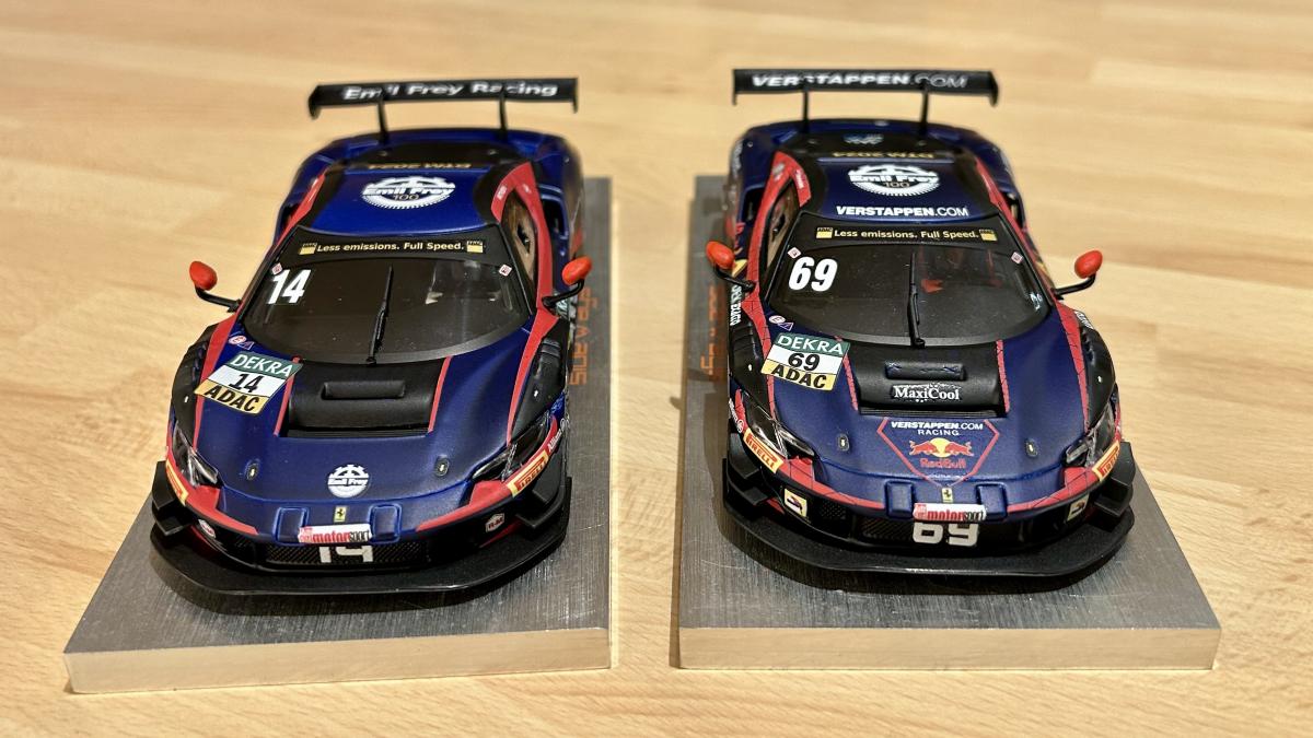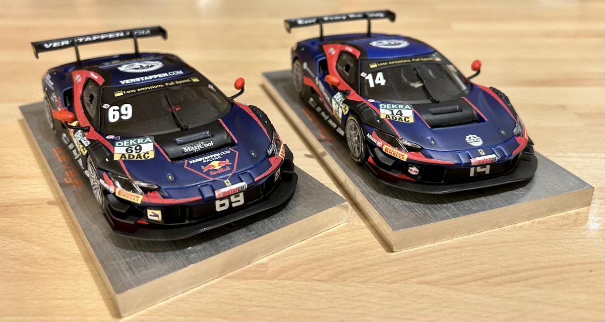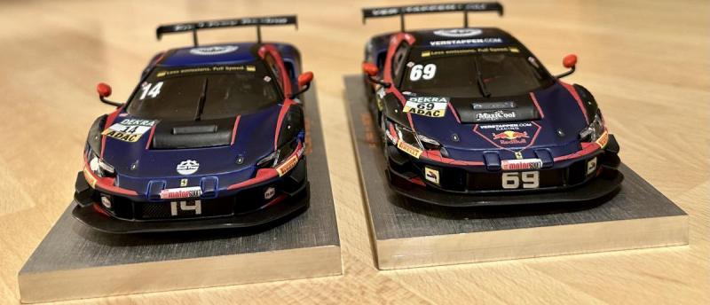 Voici donc deux voitures de l'équipe Risi Competizione, en commençant par la 488 GTE qui a roulé au Mans en 2016 (avec une très belle deuxième place de catégorie comme résultat), accompagnée par la 296 GT3 qui a remporté la catégorie GTD Pro aux 24 Heures de Daytona en 2024: