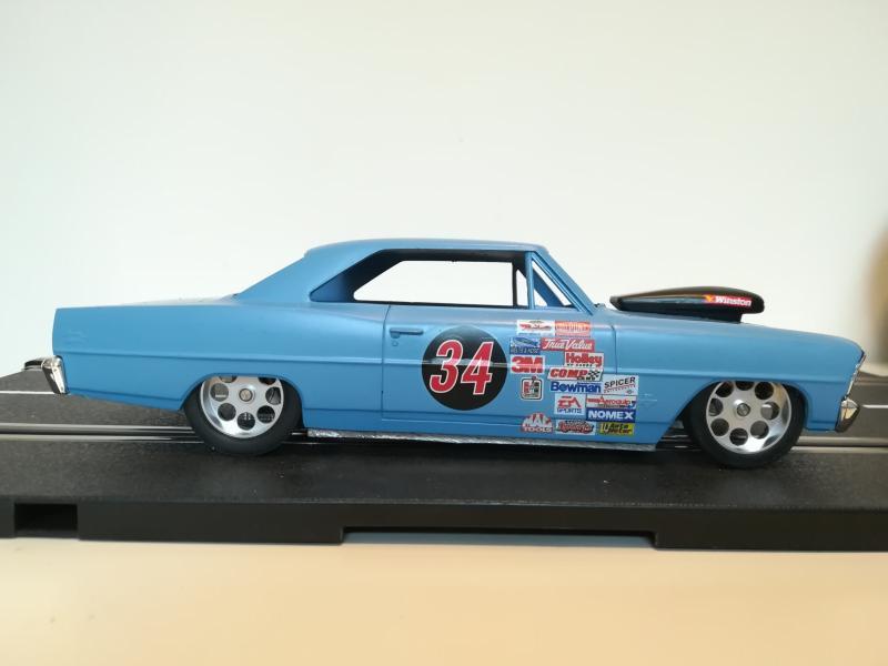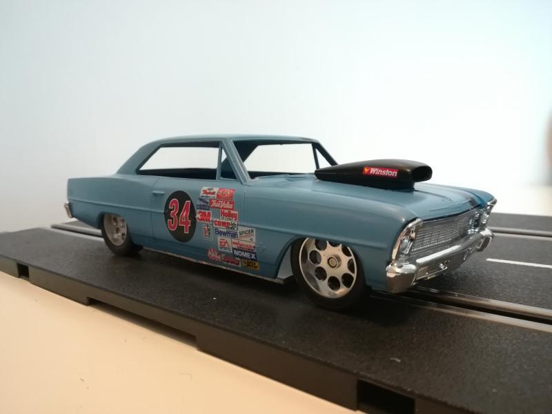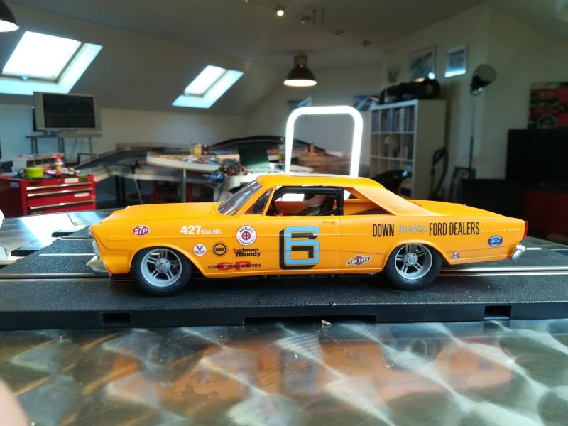 Celle peinte … une Nova AMT chassis Scaleauto , en face une galaxie 500 AMT scaleauto aussi pour le chassis