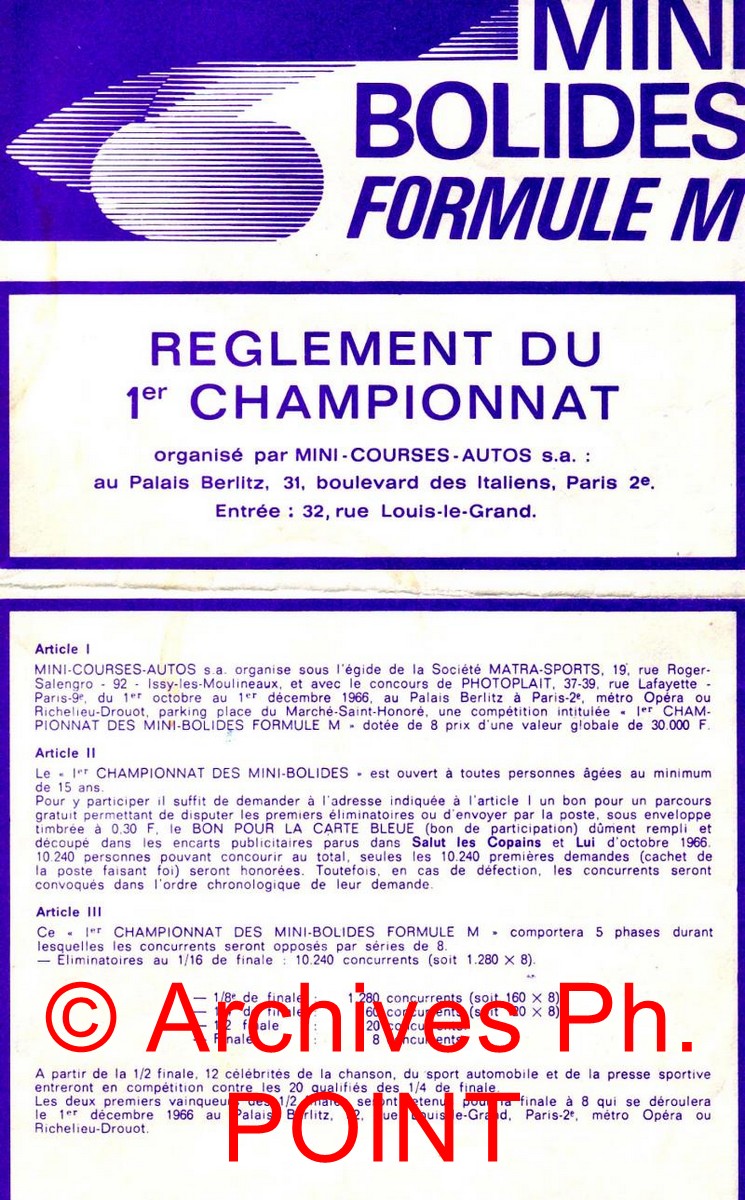 VilBrekin a écrit :J'ai cherché sans trouver des photos du palais Berlitz, dans mon souvenir il y avait une Matra djet où une berlinnete à gagner accrochée au mur mais c'est un peu vague. Ce dont je suis sûr c'est d'y avoir rencontré JP Beltoise et JP Jabouille.