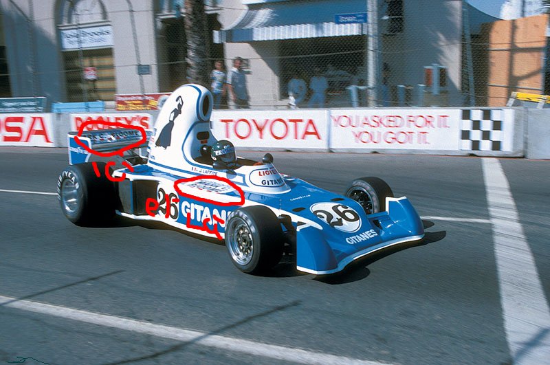 il sera plus aisé de ne pas mettre les décals sur les moustaches que de rectifier les caches de radiateurs sinon il suffit de ne pas mettre les sponsors spéciaux à long beach pour avoir une repro d'un des 3 gp précédant celui de long beach