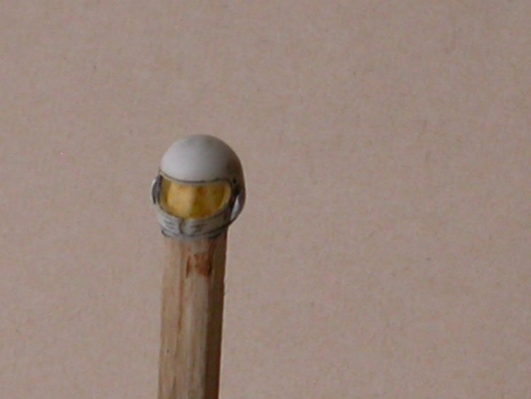 - retoucher eventuellement en gratouillant avec le plat de la lame d'un scalpel ou avec des petites retouches de blanc ou de bleu. si on a utilisé de la peinture en bombe, qui est trop diluée pour une utilisation au pinceau, il faut mettre un peu de spray au fond d'un petit récipient (le capuchon de la bombe par exemple), laisser évaporer un peu et y tremper son pinceau lorsque la peinture a atteint la viscosité idéale.