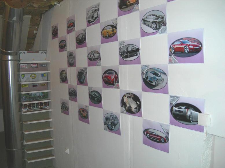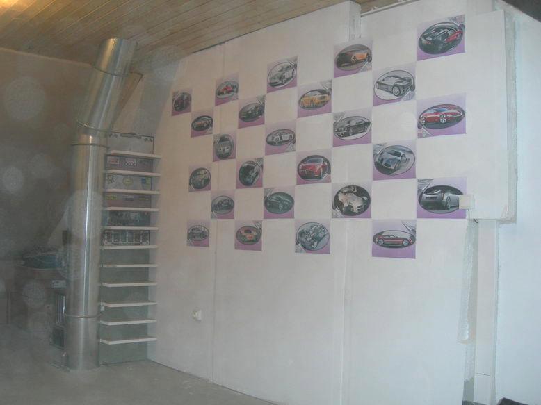 une coin FERRARI !! j'ai mis un gros logo au millieu du mur (70 cm de haut... le logo hein !!! pas le mur !!! ) et je met toutes les FERRARI construites !!!! enfin !!! j'vais surement en oublier !!!!! pas grave !!!