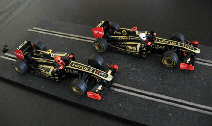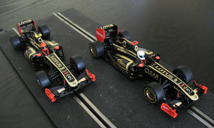 Ces Lotus Scalextric sont superbes, et très bien finies au niveau carrosserie, mais un peu déçu pour les casques des pilotes Hornby aurait pu faire un effort !!