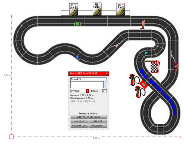 N'ayant pas une très grande place, je me suis équipé du logiciel Ninco pour tracé la piste. Et voici: