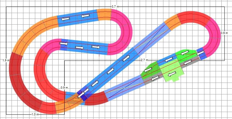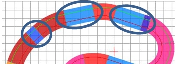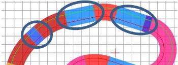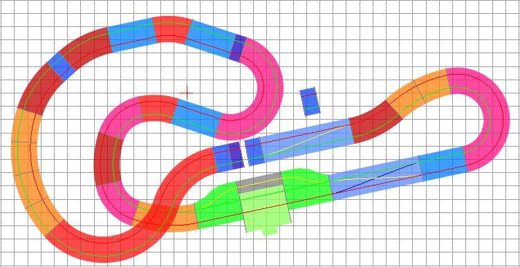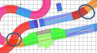 3. généralement on évite d'inverser la courbure de virages sans un petit bout de rail droit intermédiaire, donc on évite des sections comme celles entourées ci-dessous: