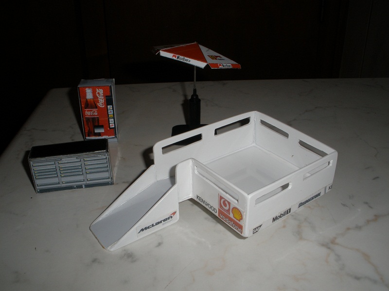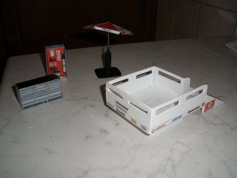 un distributeur de boisson, un parasol et servante a outilvoilà pour les nouvelles je mettrai ma déco sur mon plateau des que j aurai recus mes figurines !