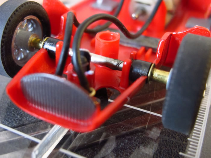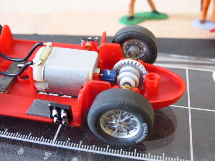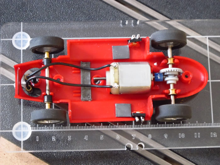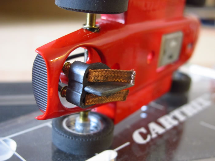J'ai changé le guide pour un Ninco suspendu que j'ai adapté à la profondeur du rail Scalectric classic... elle tient bien mieux dans le slot.