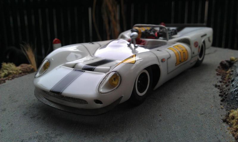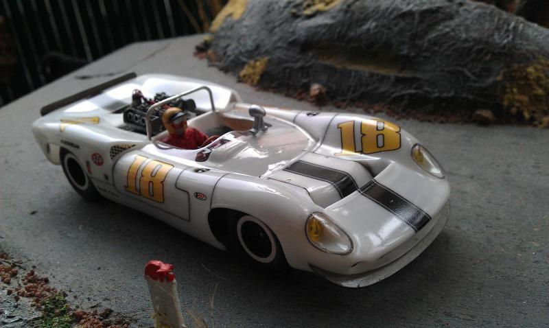 caro plastic 1/24 Lola T70 Spyder Top Slot et châssis carrera a + petit fred.