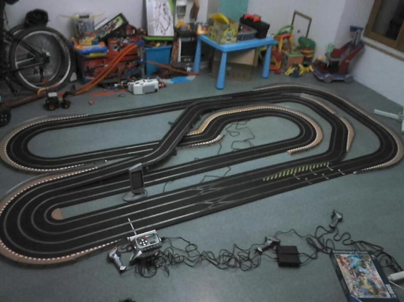 voici ma piste avec laquelle nous nous amusons bien. elle fait 20,50 mètres. système digital avec pb6. je joue surtout avec mon ptit bonhomme de 3 ans.