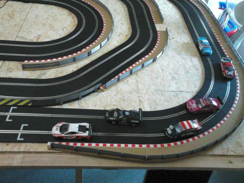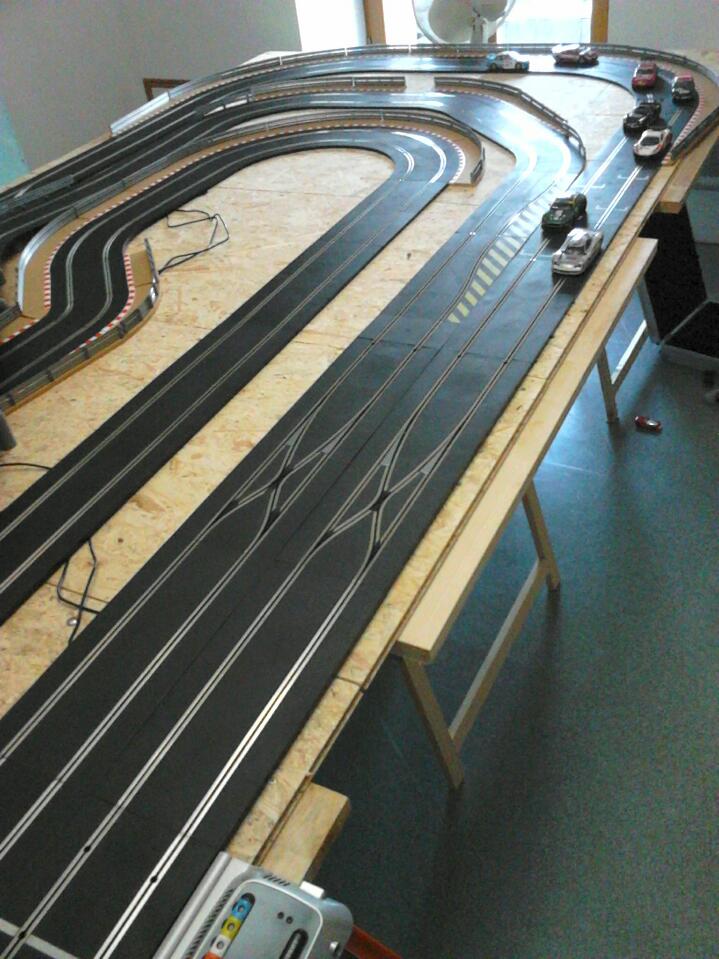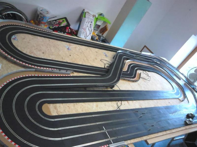 ce tracé est très récent car pensé vite fait au taf samedi matin mais beau parcours technique et rapide a la fois. je viens tous juste de finir le plateau. reste a trouvé de la moquette pour finaliser.