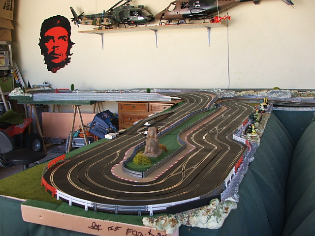 bonjour a tous , ma nouvelle piste (scalex 3 voie digital et 4 voie analogique )reste a ajouter garages et pub, et "roule ma poule"