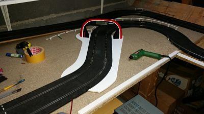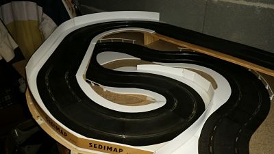 voila la suite de l'aménagement de ma piste bordures et mur sont fait en carton plume. il y a plus qu'a peindre le tout.
