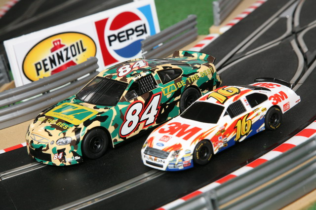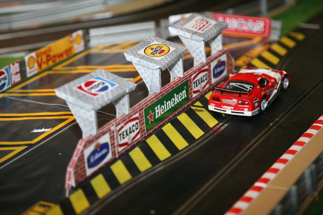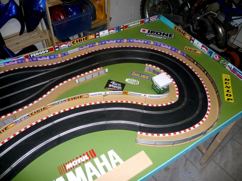 je me suis fait un stand pour ranger les voitures. carton pulme impression photo créé via toshop. j'ai mêm fait les encoches dans le carton pour laisser passer le guide