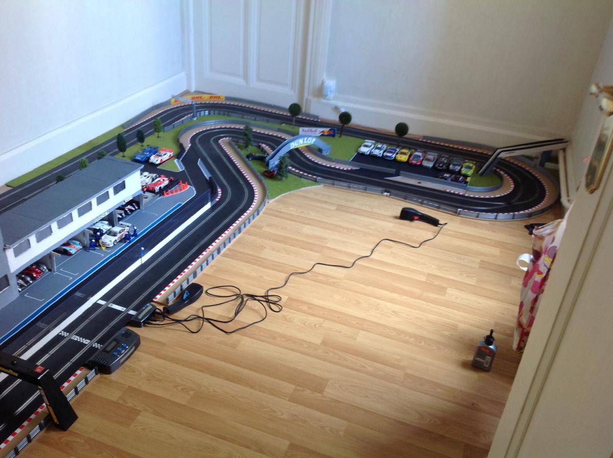 Et pour tous te dir j ai un troisième circuit qui traine aussi dans le garage ( un huit avec des indicar , un kit pack extension 1 , un dépars du mans de chez scx et pour finir une dizaine de mettre de rail en scalextric classic et tous ça dans le garage :-)
