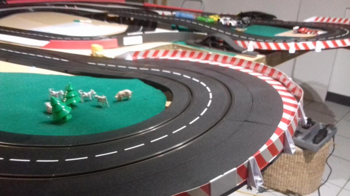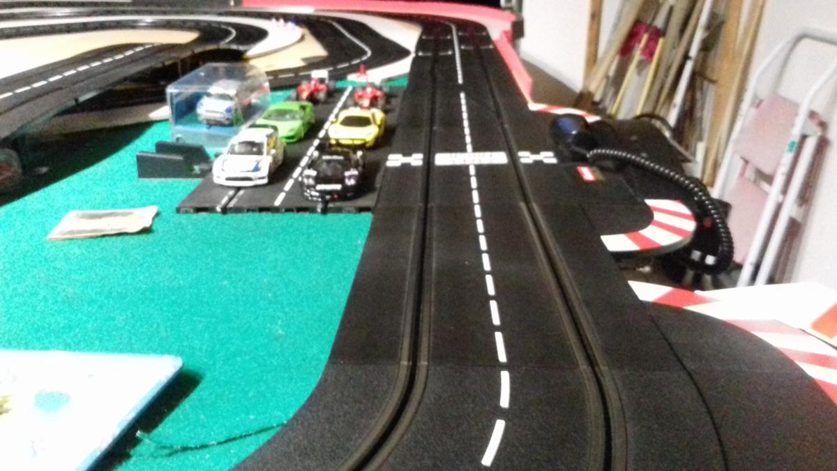 Le problème pour ce qui est de la sortie du dernier virage est qu il faut le passer sans trop déraper sinon pas de chrono, la cellule ne détectera pas la voiture.Sinon ce nouveau circuit permet d accélérer à fond , de passer de grandes courbes avec un peu de gaz, de gérer la dérive dans le serré. .... Un régal au vu de mes précédentes productions.De toutes façons, il y a encore des points à améliorer.