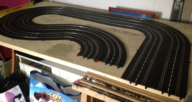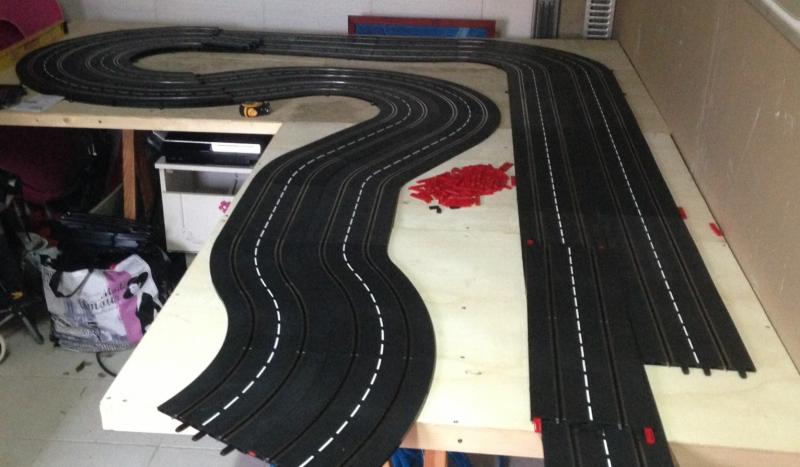 Après avoir été gentiment viré de la pièce dédier au slot il y a maintenant deux ans pour y installer ma petite dernière, je n ai pas eu d autre solution que de m' exiler dans le garage l'hiver, et j ai la terrasse l été...... Baaaa c est mieux que rien