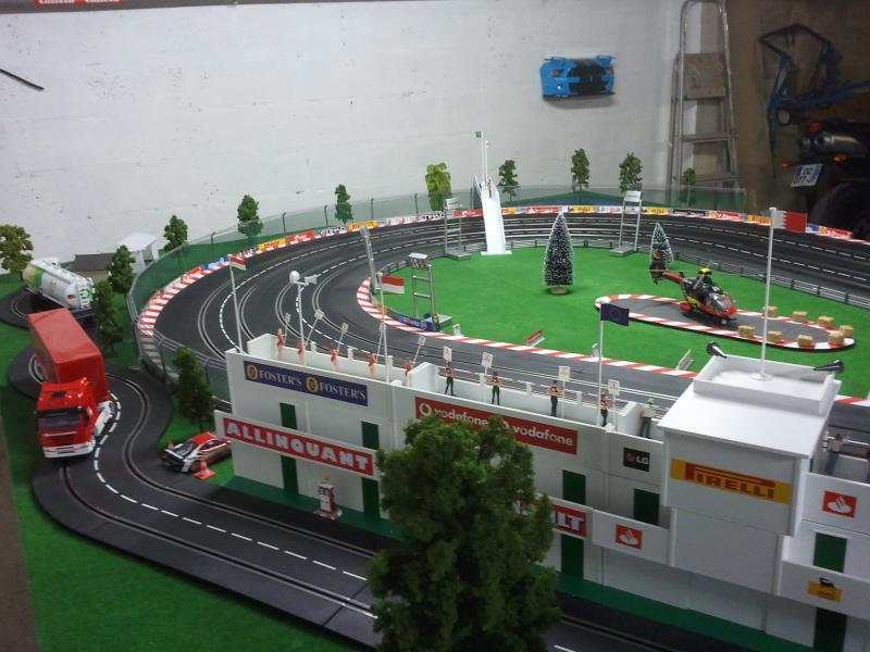 bonjour voici des photos toutes récentes de mon circuit toujours prises avec amour par ma chérie...J'ai profité des vacances pour essayer de l'améliorer. (pas ma chérie, elle est déjà au top...)