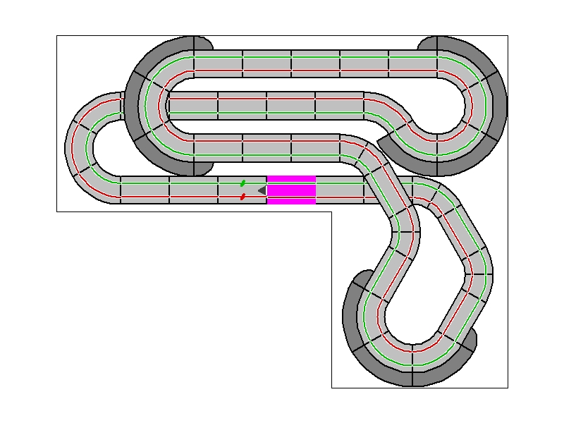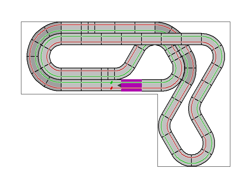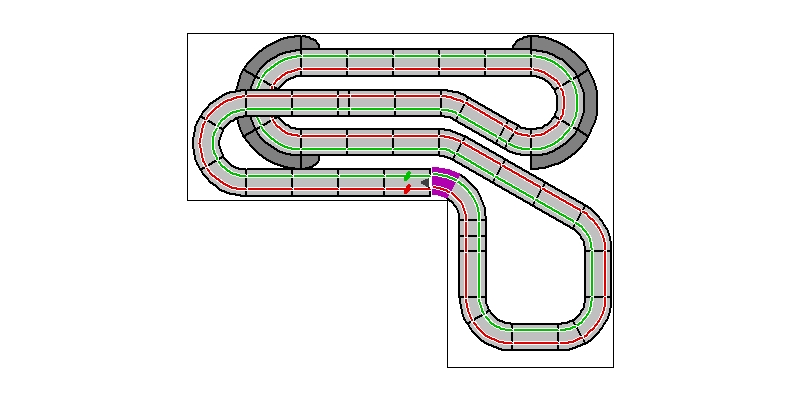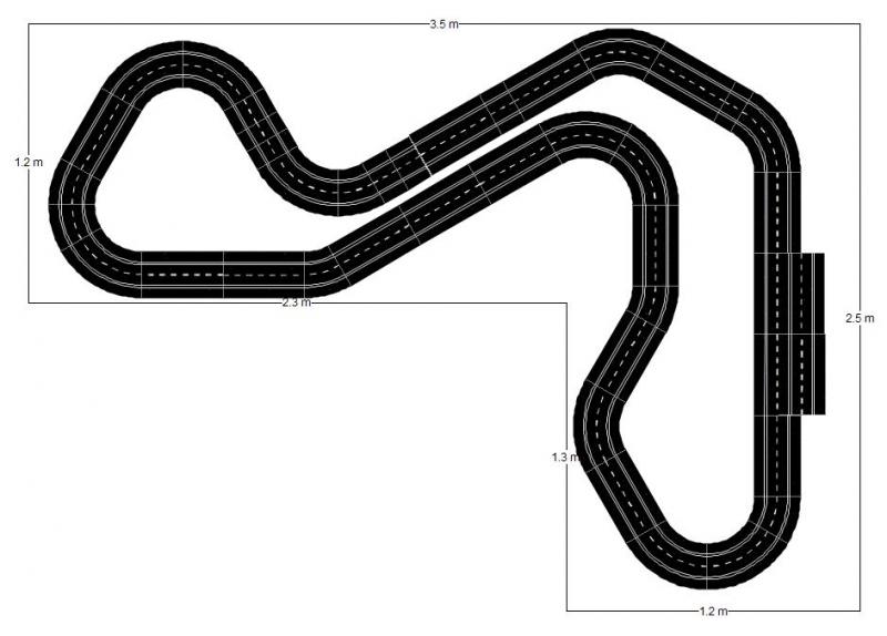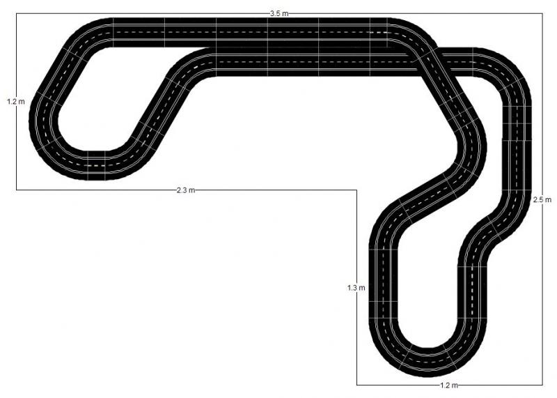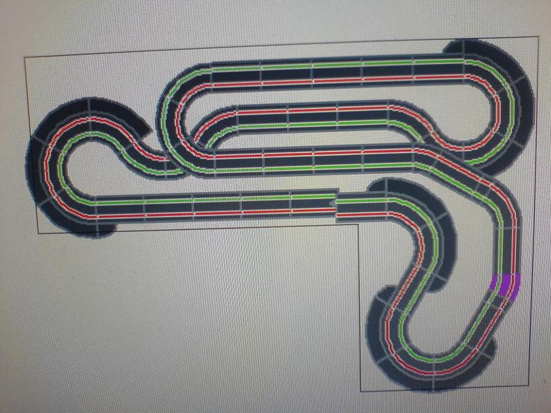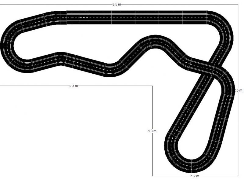 J'en remets une dernière couche si cela peux te donner des idées Slot 1 = 13.25M et Slot 2 = 13.87M (à voir si cela ne pénalise pas trop !) Standard Straight = 22 Power Terminal = 1 Curve 1/30° = 8 Curve 1/60° = 14 Par contre, je sais pas comment tu comptes installer les ponts dans cette config.