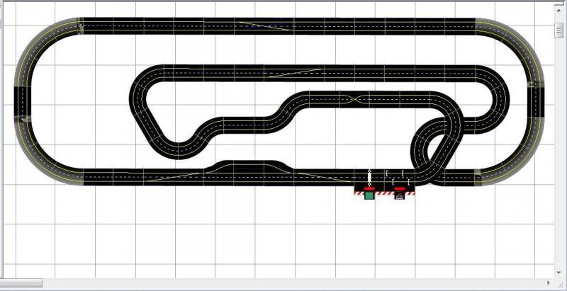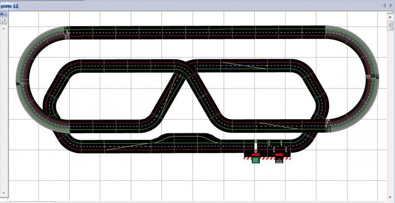 Salut à tous, avec l'aide du logiciel "Ultimate Racer 3.0", j'ai réussi à créer la piste que j'ai montée sur une table fixe de 20' X 8' ; à noter que tous les détails n'y sont pas. J'ai essayé toutes mes voitures telles quelles avec leurs aimants et aucune accroche la piste. (Légère modification faite)