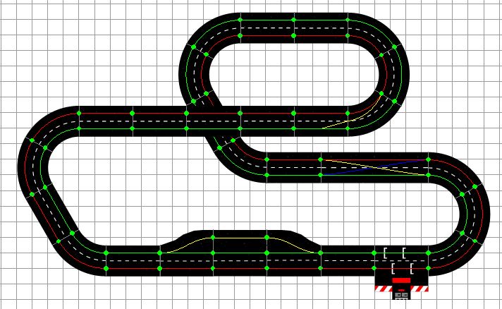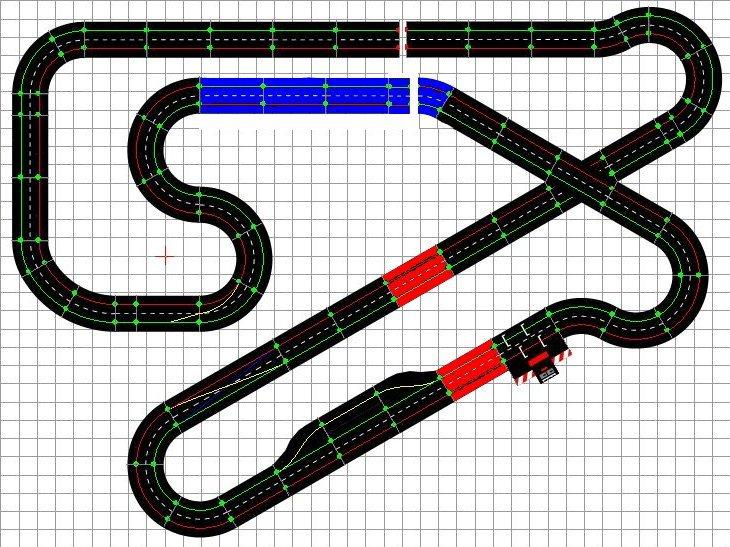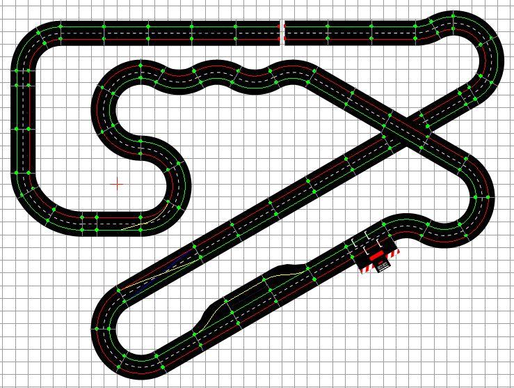 Sachant que mon but premier est de jouer à 3 ou 4 joueurs, j'ai calculé que ça me revenait moins cher de racheter un autre circuit. Du coup, j'ai simulé une piste avec exactement le nombre de rails que j'ai. J'aurai en plus un digital droit et 1 courbe digital que je n'ai pas encore mis.