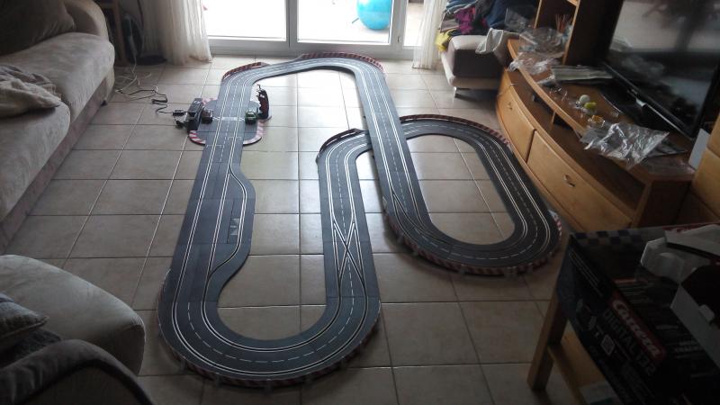 Bien, étant donné que je n'aurai pas la place de mettre ma piste sur plateau, manque de place, je vais partir sur un circuit qui rentre juste dans mon salon que j'ai déjà essayé et une piste extérieur que je mettrai sur ma terrasse. Je les monterai et démonterai à chaque fois mais je n'ai pas trop le choix.