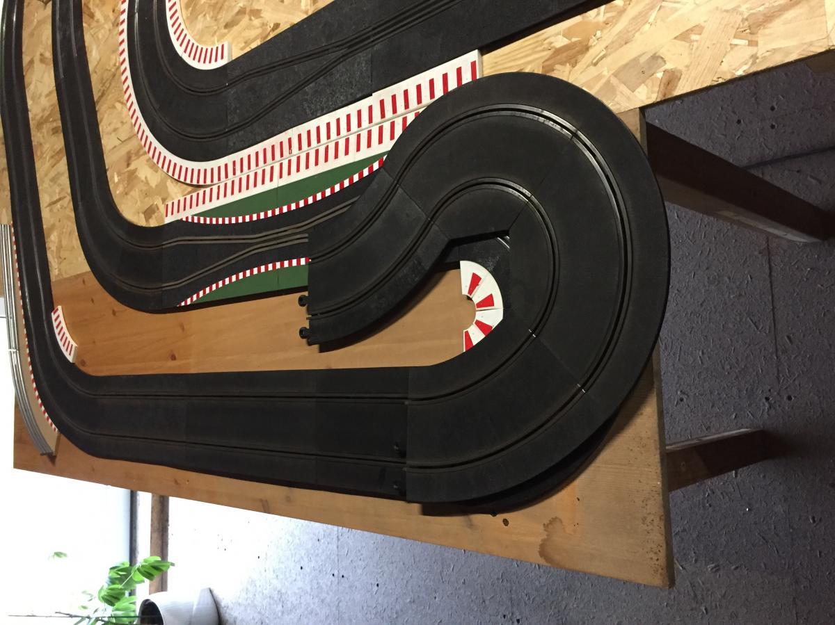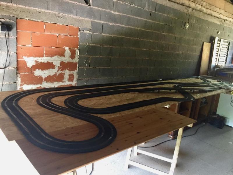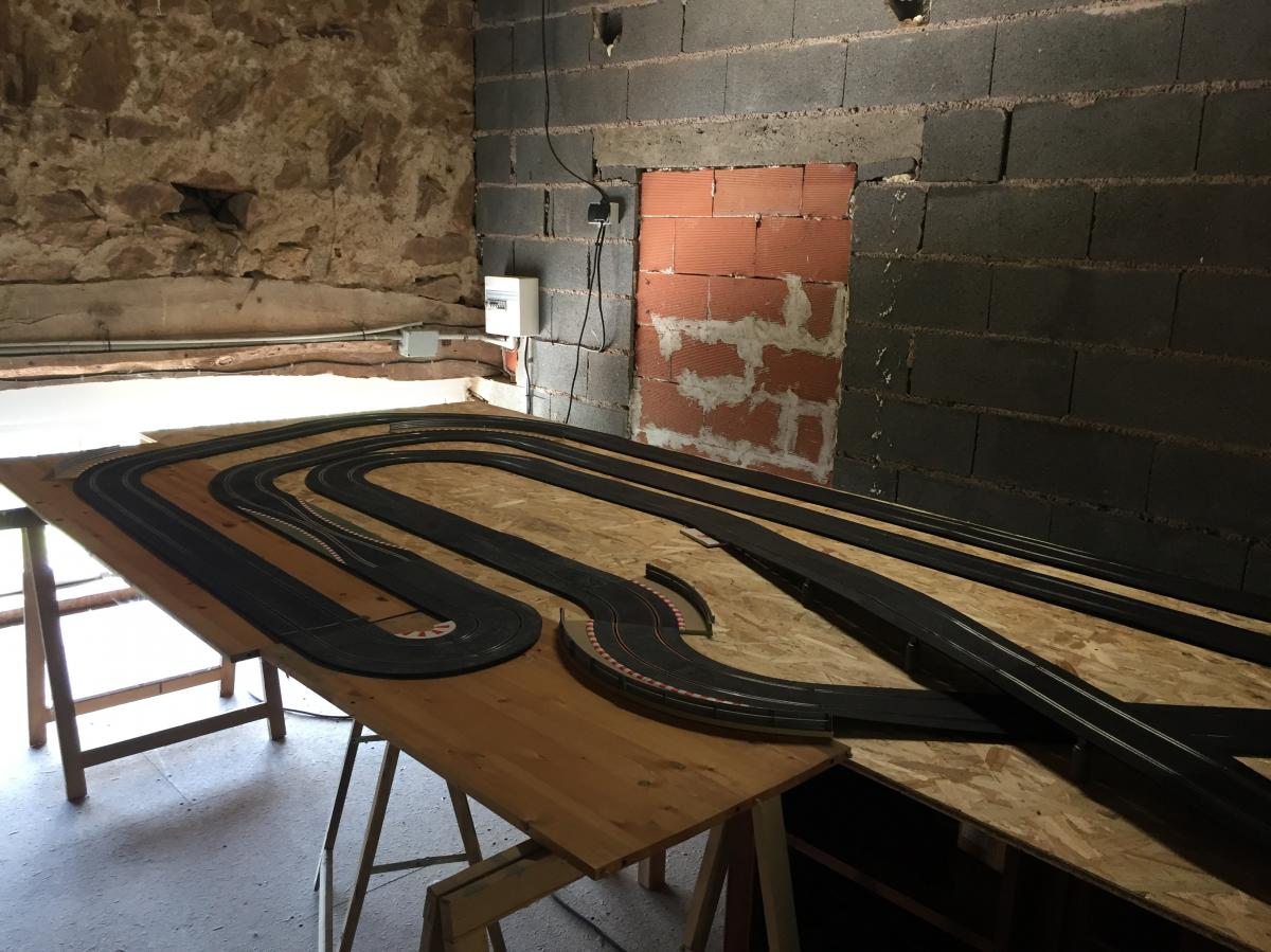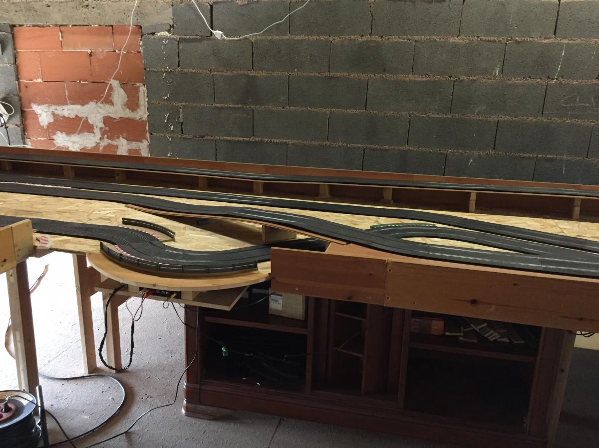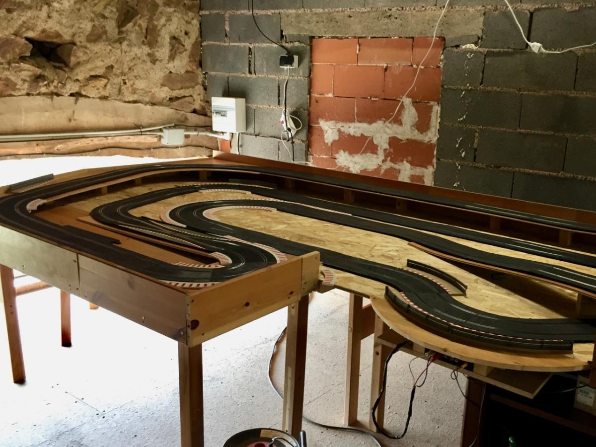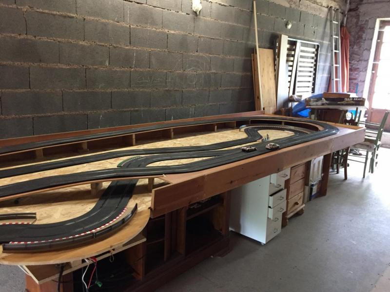 Ma piste a étés installée cet après midi, les tests de roulage en commencés, doucement car pas ou peu de bordure et pour l'instant pas de plinthes le long du plateau pour empêcher les chutes .