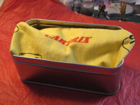 N'en jetez plus... la boite métallique finement imprimée, le tissu également imprimé, le support transparent et original de la voiture donnent un ressenti qualitatif certain. Il faut que la parure soit à la hauteur de l'écrin... Et c'est le cas au premier coup d'oeil !