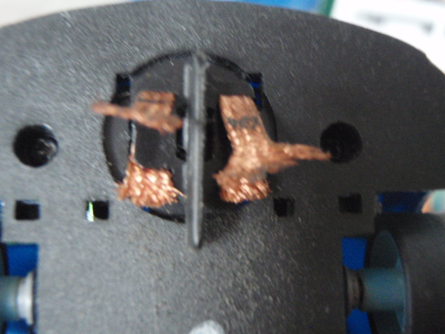 sinon, pas moyen. ce qui est pourri chez SCX c'est pas le guide mais les lamelles en cuivre (mais ce n'est que mon avis). Pour éviter le déslotage, il faut mettre une seule épaisseur de tresses. comme ci dessous.
