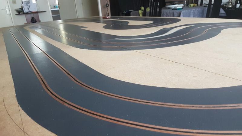 Perso toutes les bandes blanches de ma piste sont faites en filet "tuning"... C'est hyper facile à poser et ça tient des années, malgré les grosses variations de température dans ma pièce (de moins 15 à plus 35).