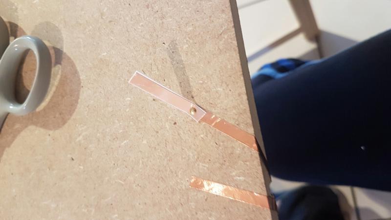 J'ai d'abord coller le cuivre sur des petites bandes cartonnées: