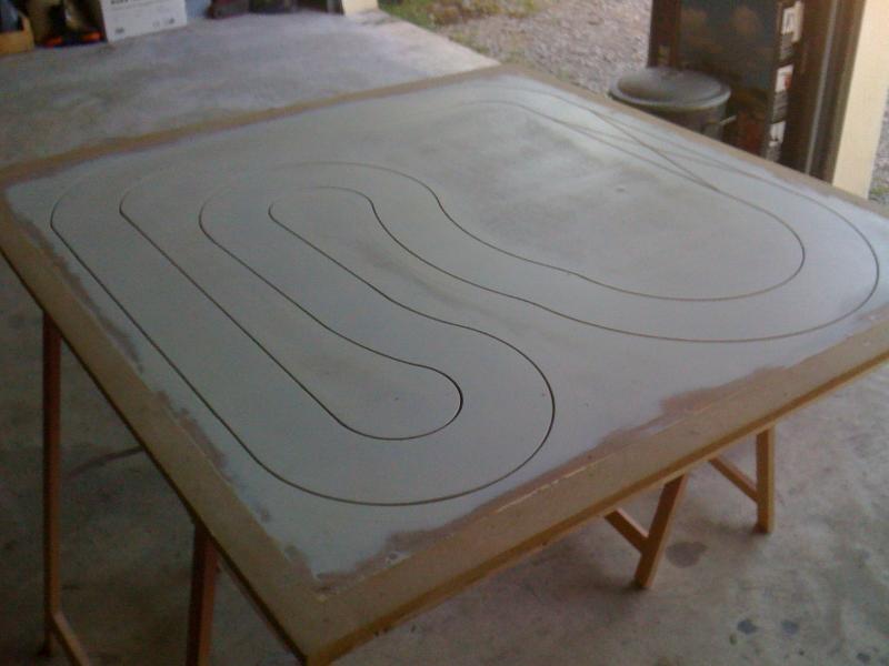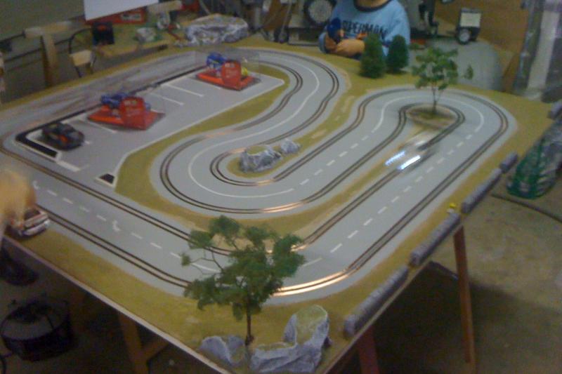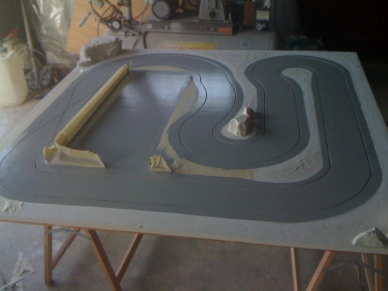 bon jour a tous le monde je me presente patoch je suis nouveau sur votre site apres avoir regarder se que vous faite j ai pris le virus du coup je vien de comencer une piste bois la premiere le plateau fais 120x120environ voila la bete apres defoncage ensuite debut de la deco avec les parape en ciporexen suite fabrication des rochers avec des moules en papier alu et du map puis fabrication du trotoire du parkingpremiere couche de peinture sur la piste2 eme couche sur la pistepeinture des rochers peinture de bord de piste en maron et debut de pose de flocage fabrication des arbre avec fil de cuivre et ouate et pour le flocage siure et penture verte de plusieur tonapres la pose du cuivre premier essai avec les enfantsvoila c est tout pour le moment il me reste les stande a finir je vous montrerez sa quand ils seront fini
