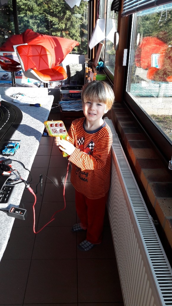 La première réaction lorsqu'il a ouvert les yeux.... c'était clairement de l'étonnement et une énorme surprise, qui ensuite a laissé place à un sourire immense qui ne l'a quitté que pour le repas, le gâteau d'anniversaire avec papy et mamy et le coucher pour une nuit à rêver de drift !