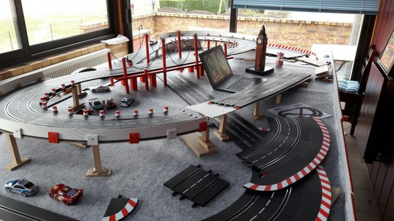 Ajoutez à cela un petit investissement en bordures carrera : car malgré l'ensemble de mes essais 'maison', je ne suis jamais satisfait et souvent le résultat mais en péril les voitures à long terme (glissades, frottements) ... je ne sais plus qui était intervenu, mais je confirme qu'à force les tapis De4 tLon, cela se relève et se décolle ... le seul système qui a bien tenu est celui avec le scotch double face puissant ...