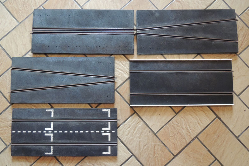 Et pour 3 euros, 20 droites, le transfo, des manettes au nombre de 4, des trucs courbes que je ne sais pas à quoi ca sert sinon à sortir de la piste, une petite doc, le transfo marqué "Mad in Ingleundeu" avec sa prise deux fiches et pas de terre rapport à ce qu'à l'époque, il ne s'embêtaient pas avec les détails comme ca.Et pour ce lot, ma seule question est : Vais-je trouver facilement de la piste "Vindeudjeu"avec ce type d'emboîtement ???