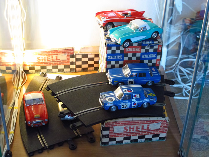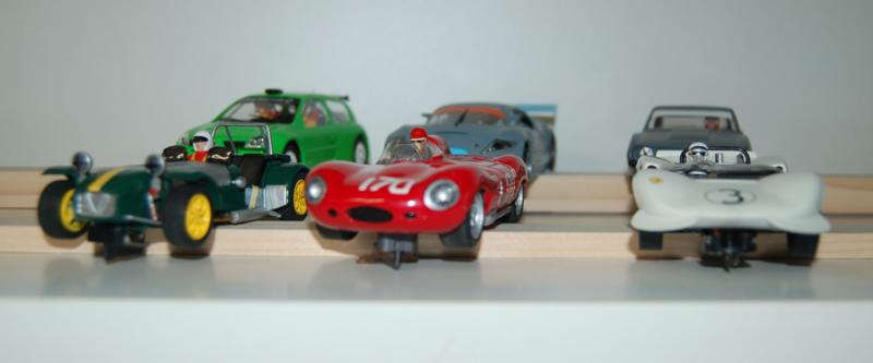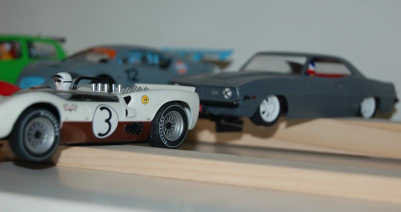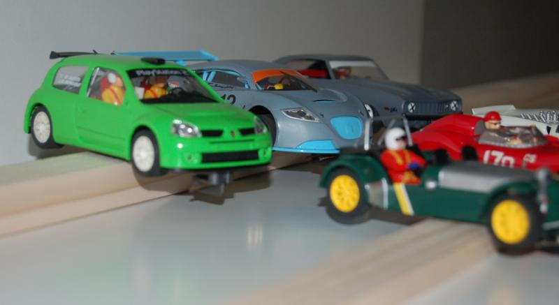 Pour se rendre mieux compte, et voir que les roues ne touchent jamais les étagères, voici une petite mise en scène rapide, sur des tréteaux, avec quelques autos qui trainaient sous la main :