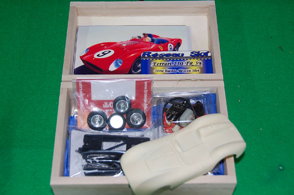 bon voilà pour la petite histoire,en début d'année je tombe sur une annonce du forum intitulée vente un peu particuliere ,postée par Bob 73-74 et je saute sur l'occase,réception du colis et là ouf,un peu déçu par la carrosserie, car pas mal de défauts d'aspérité,detaillage succin, pas de puits de vis pour le chassis et manque la bulle de capot, et pilote plus long que l'habitacle,normal je suis novice,et puis en faisant des recherches sur l'histoire de ce kit,je me suis dit je ne peux pas les décevoir et j'ai pris ça comme un challenge,