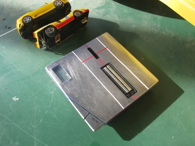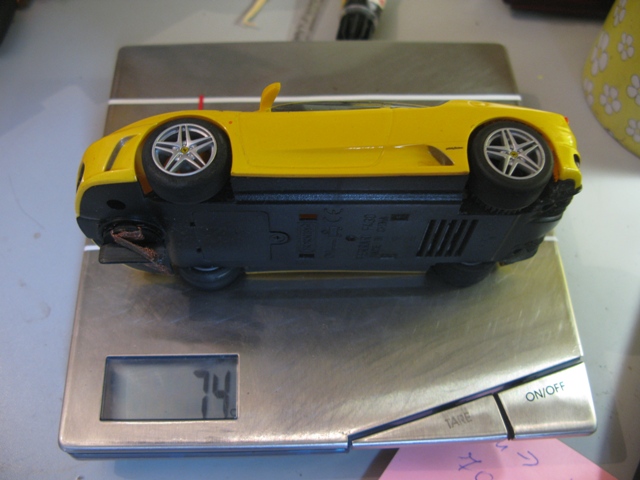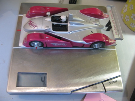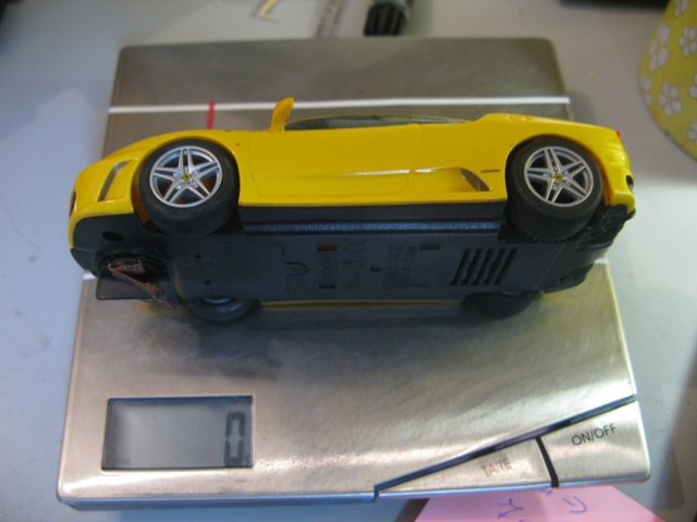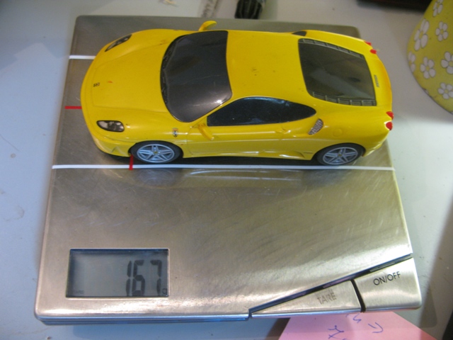On pose une auto sur le coté : ici une F430 scalextric aimanté, le poids de l'auto s'affiche.