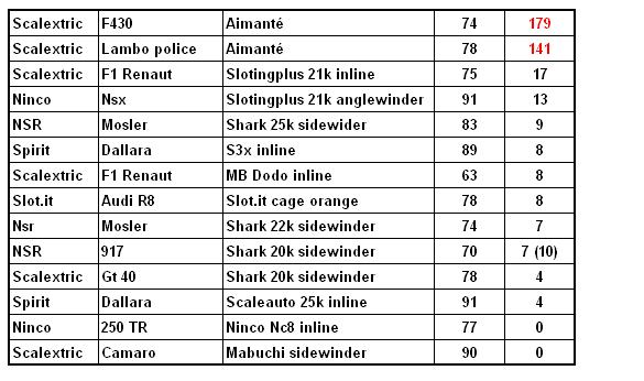 - les rails métalliques ne sont pas à la même hauteur sur du Ninco et du Carrera par ex. l'effet d'aimantation sera plus fort sur du Ninco et cela la balance ne te le dira pas ...