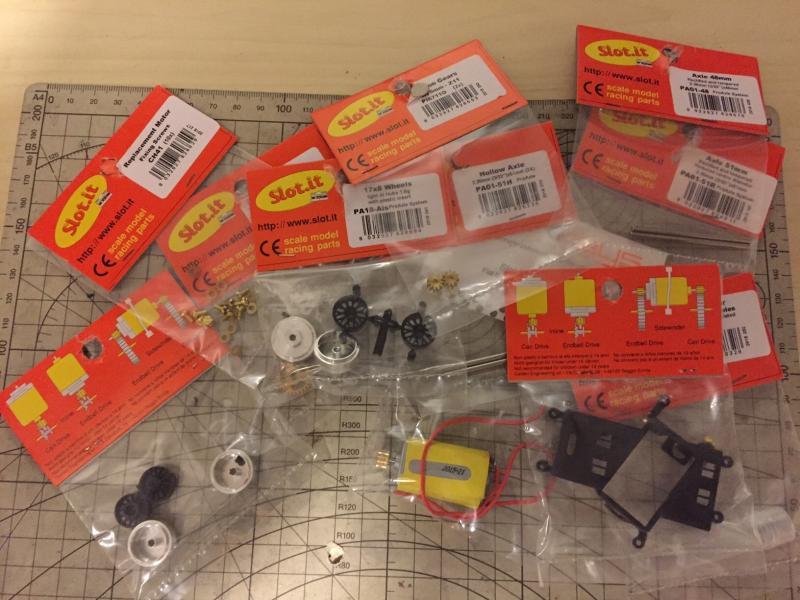 Il ne me reste plus qu'à commander le support moteur Slot-it anglewinder, le moteur, et toute la partie mécanique y compris les axes et les jantes. Au final, ça va coûter bonbon, mais quand on aime on ne compte pas !