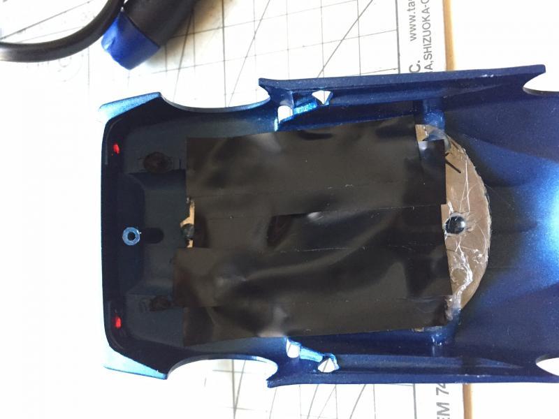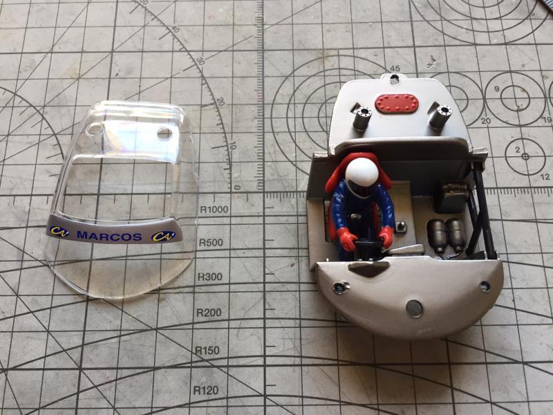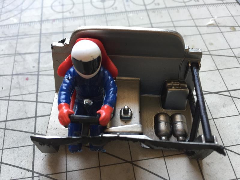 Si je peux me permettre une petite suggestion : enlève la tête du pilote et prend une photo vue de dessus du reste du cockpit avec le corps du pilote en place. Tu la mets à l'échelle, tu l'imprimes, tu la colles sur un bout de carton ou de carte plastique et tu colles la tête du pilote à sa place avant de remplacer ton scotch noir avec. Tu verras : le résultat est bluffant