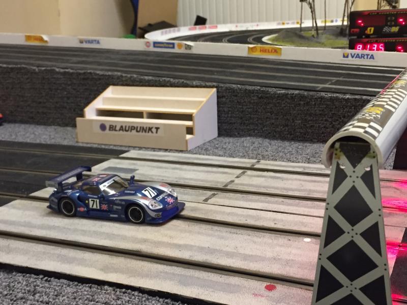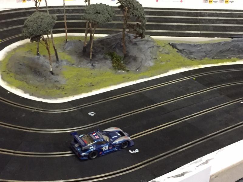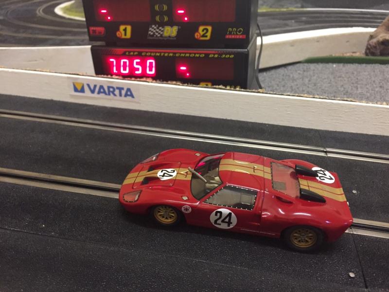 Au niveau chrono, un petit 7"916 mais sans trop forcer (+ quelques petits soucis d'alimentation de la piste). À comparer avec des chronos à 7"5 s/ 7"6 s avec la Sideway, mais bien loin des chronos réalisés sur la même piste avec ma GT40 MKI Slot-it (7"050s). Mais bon celle là, c'est un avion de chasse (une petite photo à la fin pour le plaisir).