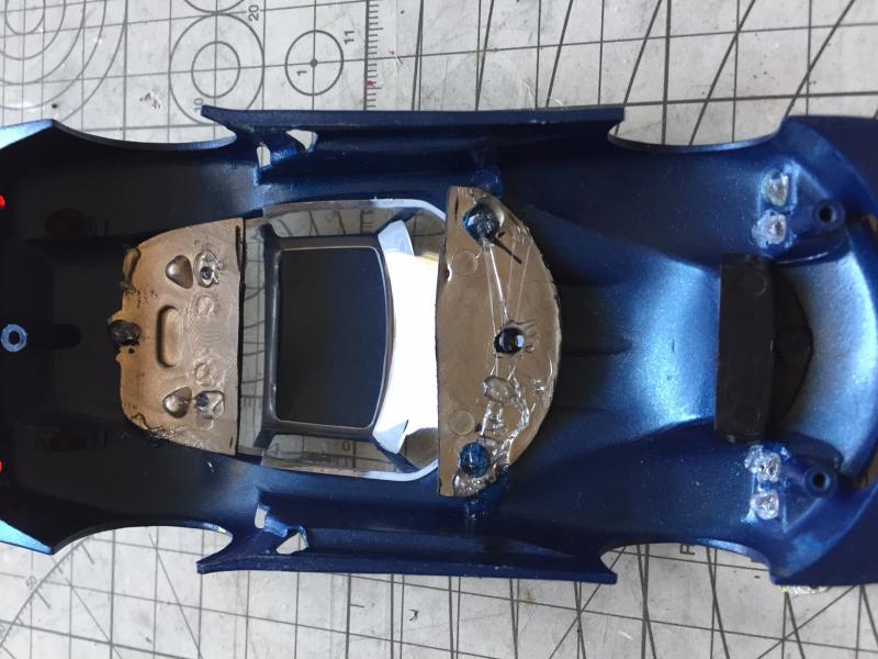 Passons maintenant à la carrosserie qui nécessite une petite modification pour faire entrer le moteur (d'origine le moteur est à l'avant). Un peu de découpe s'impose.
