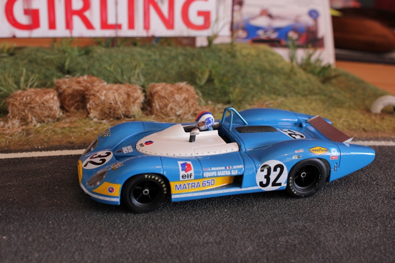 Deuxième conclusion : le bleu Tamiya TS-44 passé sur un apprêt blanc Tamiya (et non sur un apprêt gris comme dans la réalité, d'après M. Roy), donne exactement le même résultat que le bleu des modèles Le Mans Miniatures. Comme on peut faire confiance à LMM sur ce point, on peut en déduire que cette combinaison correspond au "bleu Matra" de 1968 à 1974. CQFD!