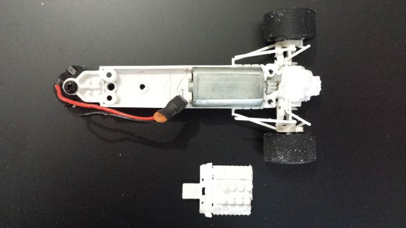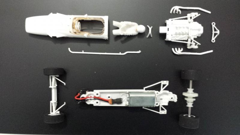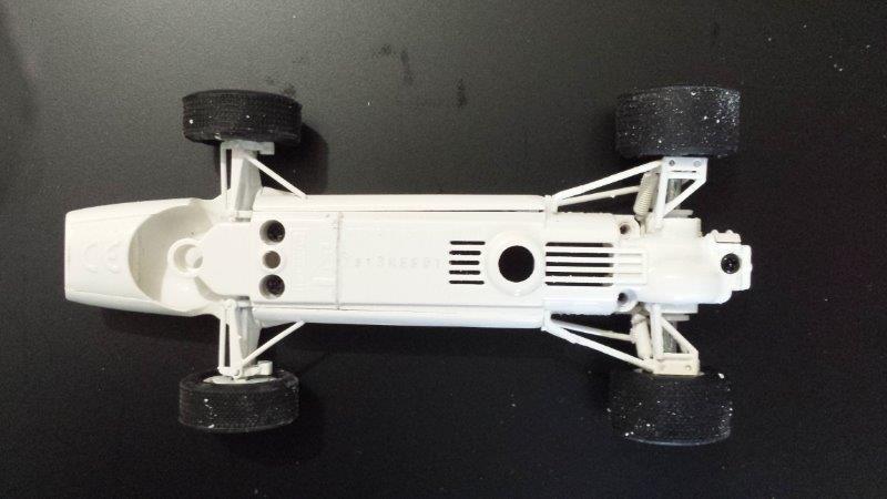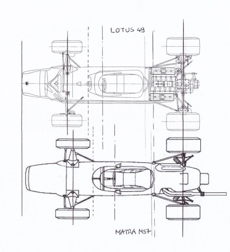 Tout d'abord, mauvaise surprise, la Matra est beaucoup plus petite que la Lotus (empattement plus court de près de 12 cm à l'échelle 1); il va donc falloir découper... C'est pas gagné...