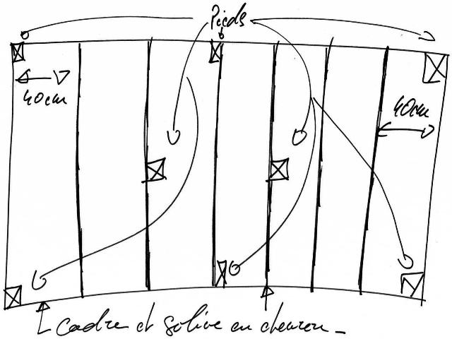 j ai surélevé de 40 cm par rapport au sol avec du 8/8 pour faire les pieds et le support(j espère que vous suivez toujours)